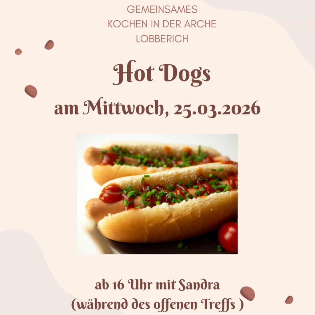 • Morgen gibt’s in der Arche Hot Dog’s! März 24, 2026